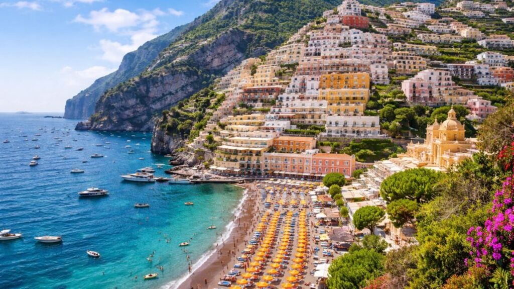 Se você quer fazer uma viagem que pareça um sonho italiano clássico, com vilas penduradas na montanha, mar ao fundo, restaurantes com vista e hotéis cênicos, a Costa Amalfitana continua sendo imbatível em impacto visual. O portal local descreve Positano como o vilarejo mais famoso e icônico da costa, num trecho de cerca de 60 km entre Nápoles e Salerno. Esse é exatamente o tipo de destino que parece cinema já na chegada.