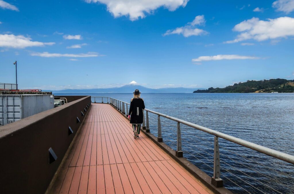 O píer emoldurado pelo Osorno é uma das cenas mais bonitas do Chile.