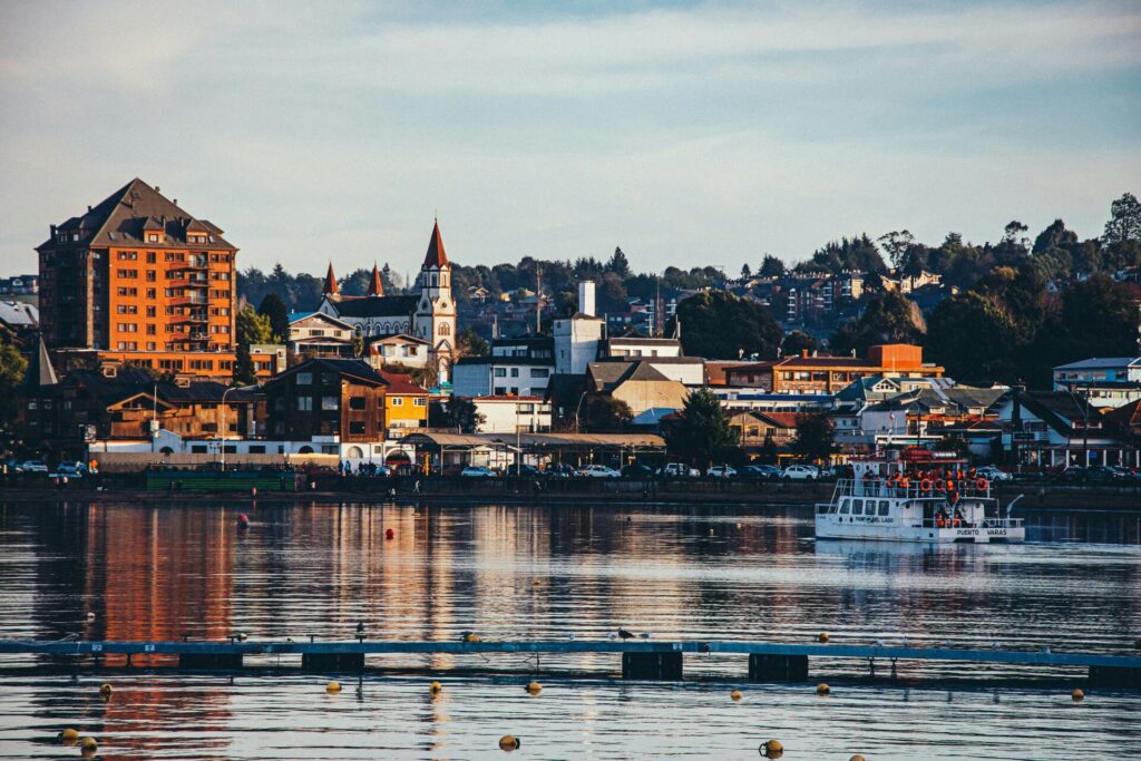 Assim que o ônibus ou carro se aproxima do Lago Llanquihue, os picos nevados começam a surgir entre as nuvens, as casinhas de madeira aparecem no horizonte e aquela atmosfera alemã — traduzida em arquitetura, confeitaria e forma de viver — te dá as boas-vindas ao Sul do Chile.